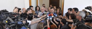 Maíllo y Lara han comparecido en un receso de la reunión que el Consejo de Dirección de IU mantienen desde esta mañana para analizar la crisis abierta por el golpe de mano de Díaz al retirarle las competencias. A la reunión se ha sumado la consejera de Fomento, Elena Cortés, cerca de la una de la tarde tras regresar de Panamá. Cortés no ha comparecido ante los periodistas y al ser preguntado por ello, Maíllo ha respondido que esta es una crisis política “que se tiene que afrontar desde las organizaciones”. “El diálogo no es institucional, sino que tiene una clave política”, dijo.