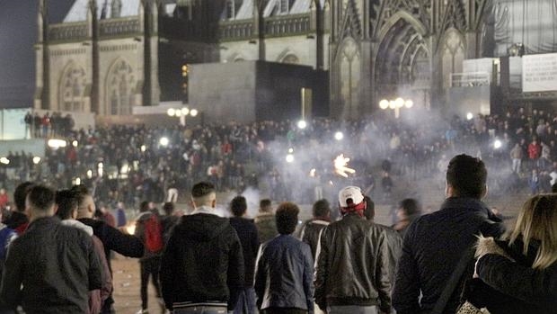Fotografía facilitada hoy, 6 de enero de 2016, que muestra a una multitud en los alrededores de la catedral y la estación de tren en Colonia (Alemania) el pasado 31 de diciembre