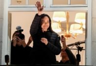 La líder opositora venezolana María Corina Machado salió este jueves al balcón del Grand Hotel de Oslo tras llegar a la capital noruega para recibir el Premio Nobel de la Paz, saludó a sus seguidores ya de madrugada visiblemente cansada pero sonriente y cantó el himno de su…