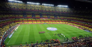 Por Enrique de Diego.- Con la coreografía de las masas aborregadas, en el minuto 17 el estadio del Camp Nou ha prorrumpido en gritos sediciosos. Se trata de una mascarada alentada por la directiva del Barcelona, el equipo de Qatar. El Camp Nou debe ser clausurado y el equipo de Qatar multado y debe ser expulsado de la Liga Española mientras no dé plenas seguridad de aceptación de la unidad nacional y de que sus espacios no van a ser utilizados para aquelarres separatistas.