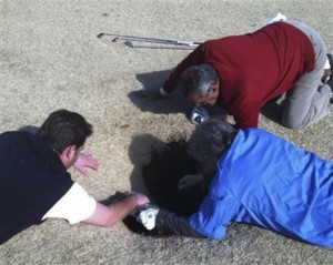 Cayó de una altura de 5,5 metros (18 pies) y se golpeó fuertemente. Sus amigos consiguieron sacarlo con una soga, aproximadamente 20 minutos después, pero la experiencia del viernes le dio un buen susto a Mihal, sobre todo tras la desaparición reciente de un hombre en Florida, cuyo cuerpo no ha sido encontrado luego que un socavón se lo tragó en el interior de su habitación.