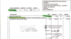 Exactamente el mismo sistema se dio en otra factura correspondiente al 15 de octubre de 2010. En este caso, la central del compras de la organización liderada por Cándido Méndez facturó a sus liberados de Alcorcón 1.511,09 euros —comisión incluida— por «496 camisetas grabadas», es decir, propaganda, a unos 2,5 euros la unidad.