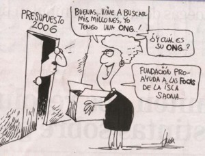 Las ONG,son un centro de estafas y saqueos,bien encubierto.Con complicidad de familiares y amigos de politicos, la mayor parte de las veces.Chiringuitos para perder y sacar pasta fuera,al igual que los DONATIVOS A TERCEROS PAISES.Lo mismo….basta ya
