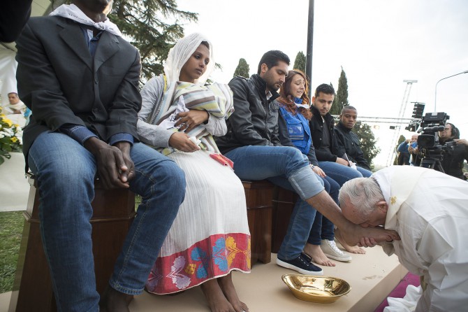 El Papa Francisco presidió este Jueves Santo la Misa de la Cena del Señor en el Centro de Acogida para los Solicitantes de Asilo a las afueras de Roma (Italia), donde lavó los pies a una voluntaria y once refugiados –entre ellos tres musulmanes y un hindú-; y en su homilía denunció que mientras Jesús, siendo el Maestro, lava los pies; en el atentado de Bruselas estuvo un Judas que detrás tiene a los traficantes de armas que quieren sangre y guerra, y no la fraternidad.