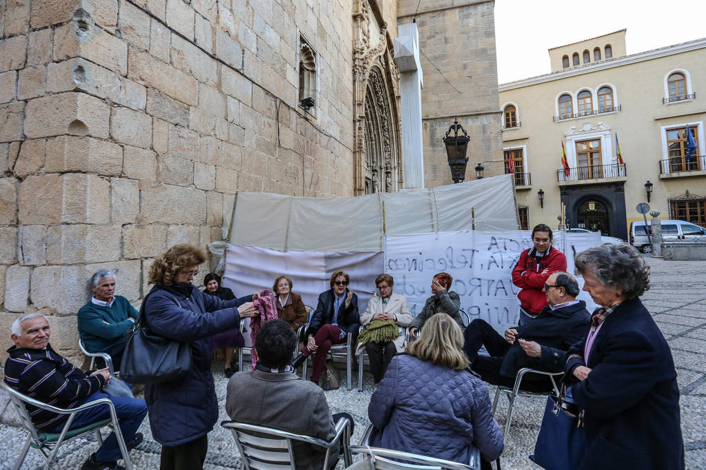 En Callosa del Segura, el Ayuntamiento, en manos del frente popular de los partidos de izquierda, quiere desmontar la Cruz de los Caídos que hay en la plaza España de la localidad, adherida a la Iglesia parroquial, en cumplimiento de la Ley de Memoria Histórica. El 14 diciembre pasado procedieron a la retirada de la Cruz, pero no pudieron consumarla debido a la activa oposición de muchos vecinos del pueblo, que desde entonces ?y son ya ocho meses de combate?, se van relevando en turnos de vigilancia para impedir su derribo. Con el rosario en la mano, organizan vigilias, retenes, concentraciones y encadenamientos, habiendo formado una plataforma que reúne casi 35.000 firmas.