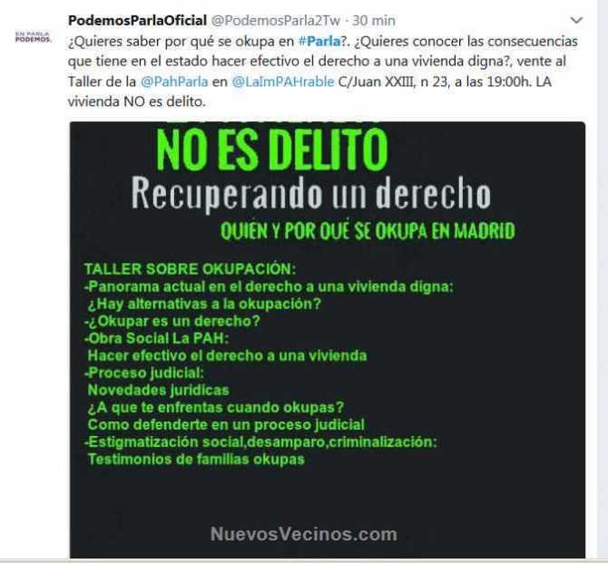 Formando delincuentes: Podemos promueve un taller sobre okupación de viviendas en el municipio de Parla (Madrid)