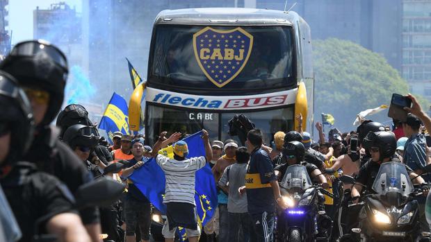 Los jugadores de Boca se dirigían al Monumental con la adrenalina por las nubes, cantando y saltando para tratar de animarse antes de la disputa de la vuelta de la final de la Copa Libertadores. Sin embargo, se escucha de repente el impacto de las piedras en las lunas del autocar y es entonces cuando varios jugadores gritan y tratan de tirar las cortinas para tapar las ventanas.