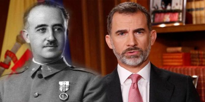 Efectivamente Felipe VI le debe todo a Franco.La suerte de los Borbones vuelve a estar echada…mas vale que se preocupara de ir buscando un nuevo exilio dorado ya que los revanchistas podemitas han vuelto a abrir la Caja de Pandora y el huracan que saldra barrera a esta monarquia.