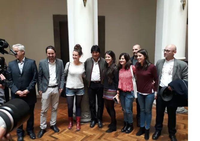 Podemos recibió del gobierno de Venezuela mas de 7 millones y medio de euros que también sirvieron para financiar la visita de Evo Morales a la Universidad Complutense de Madrid, según medios sudamercanos. La amistad está fortalecida por los negocios y los intereses que los acercan. Como ven en la foto, las integrantes del partido español fueron criticadas por su indumentaria. Mientras que la Cámara de Diputados de la Asamblea Legislativa Plurinacional informó en su cuenta de Twitter que se aprobó “condecorar con la Orden Parlamentaria al Mérito Democrático Marcelo Quiroga Santa Cruz” a Iglesias “por su vocación de servicio a la sociedad”.