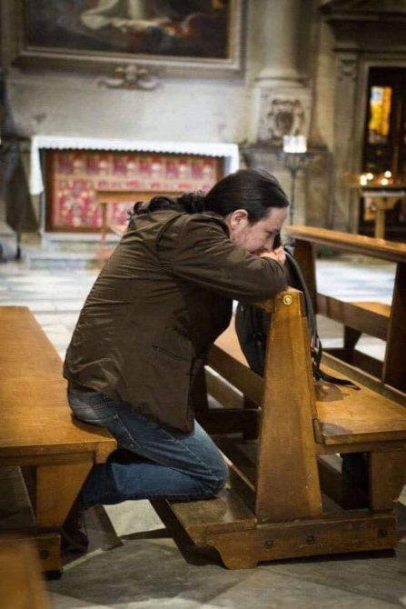Pillan a Pablo Iglesias rezando circunspecto en una parroquia madrileña antes de comenzar su cuarentena por el coronavirus