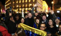 El vicesecretario de Educación e Igualdad del Partido Popular, Jaime de los Santos, en la Puerta del Sol celebrando la detención de Nicolás Maduro. El vicesecretario de Educación e Igualdad del PP, Jaime de...