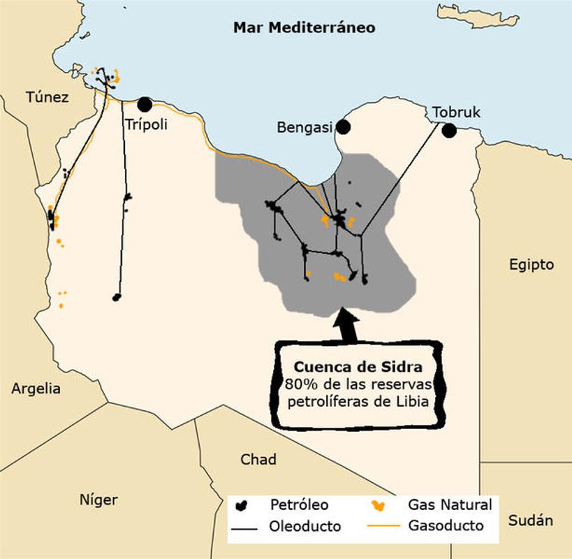 Esta división generaría un cambio de paradigma en la región. Siguiendo el mapa, los pozos de petróleo quedarían casi en su totalidad en manos de Haftar y los rusos. Mientras que la Libia Occidental pasaría a tener que depender posiblemente del turismo y las industrias manufactureras.