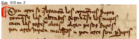 Pero antes de revelar su preciso significado tenemos que explicar que esta estrofa aparece recogida en dos manuscritos, los llamados S y G, cuya diferencia principal es -como tantas veces he repetido en otros trabajos- la poca fiabilidad del primero frente a la del segundo. Haremos un estudio comparativo entre ambos para escoger de cada uno lo que nos pueda ser más útil para recomponer el arquetipo perdido de la estrofa.