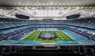 El estadio Bernabéu, reconvertido en una jaula de UFC El luchador de artes marciales mixtas (MMA) hispano georgiano, Ilia...