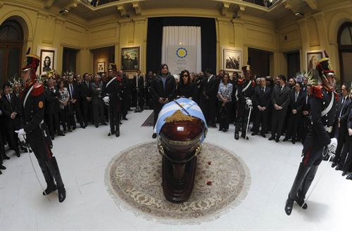 El pueblo argentino y los mandatarios latinoamericanos arroparon este jueves a la presidenta, Cristina Fernández de Kirchner, durante el velatorio a los restos mortales de su marido y antecesor en el cargo, Néstor Kirchner, quien falleció ayer a causa de un infarto.
