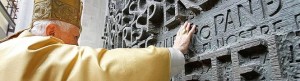 La dedicación del templo ha comenzado con la presentación al Pontífice del agua, tras los cual el Papa ha dicho en castellano: “Queridos hermanos, al dedicar a Dios nuestro Señor esta santa iglesia de la Sagrada Familia, supliquémosle que bendiga esta agua, criatura suya, con la cual seremos rociados en señal de penitencia y en recuerdo del bautismo, y con la cual se purificarán los muros y el nuevo altar”. Después el Papa ha rociado con agua bendita al pueblo y el altar, a la vez que seis sacerdotes rociaban con agua bendita los muros de la iglesia, mientras los presentes cantaban ‘Pueblo de bautizados’.