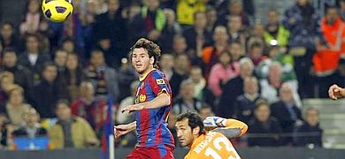 Era un planteamiento muy similar al que siempre utiliza Pep Guardiola, cuyos jugadores también presionaron casi en el área rival. El Barça supo sobreponerse a las dificultades que tenían Xavi e Iniesta para hacer circular el balón de la mano de un Sergio Busquets impresionante y con un fútbol más vertical de lo habitual. Fue un partido abierto desde el primero segundo. Iniesta, rompiendo el fuera de juego, tuvo la primera ocasión, pero controló mal. Y Diego López, en el 13, desvió con reflejos de felino un cabezazo a bocajarro de Messi. Abidal, atento, rechazó un disparo de Cazorla que ya entraba. Y Rossi se durmió en un pase de la muerte que también interceptó Abidal.