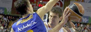 Por la mañana, un desconocido Caja Laboral ha perdido en la cancha del Cajasol por un contundente 91-71, aunque mantiene el liderato respecto al Real Madrid gracias a su mejor balance de puntos anotados y recibidos.