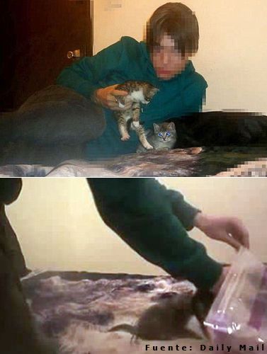 Un hombre, que parece ser un adolescente, está en busca y captura en la Red por haber difundido vídeos en los que muestra cómo mete a dos gatos en varias bolsas de plástico herméticas y luego con el uso de un aspirador les quita el aire para que no puedan respirar y acaba matándolos.