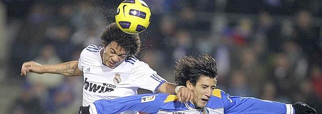 El Real Madrid tiene muchos problemas para crear fútbol, pero es demoledor al contraataque. Sacrificado en la recuperación, vertiginoso, contundente e inconformista, le endosó tres goles al Getafe y al final tuvo que sufrir con 10 por un gol de Albín que le metió el miedo en el cuerpo, pero el Madrid pudo lograr media docena si hubiese tenido más puntería. El equipo de Mourinho fue demasiado para el Getafe en el Alfonso Pérez, donde los blancos, a los que sólo les valía ganar tras el triunfo del día anterior del Barça, también con sufrimiento, mantuvo su racha victoriosa y goleadora.
