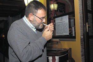 Un cliente enciende un cigarro en la puerta del establecimiento, situado en la urbanización Guadalmina.