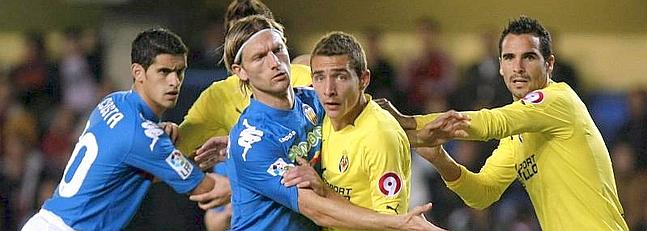 Ya pudo recortar diferencias el Villarreal al final de la primera parte, aunque la defensa del Valencia se mostró entonces sólida y no permitió descuidos, mientras su centro del campo, llevado por Banega, aunque sin crear demasiado juego, sí que contuvo al medio campo de los locales y cerró los espacios a Cani y Cazorla. Sin la llegada de sus alas, y con el limitado pero eficaz Marco Ruben en punta, al Villarreal le faltaba entonces frescura, aunque el gran Rossi estaba en todas y fue él quien se encargó de levantar a los suyos. Está pletórico el genial delantero italiano, que no para de crecer y está en la senda de acabar muy pronto en un equipo con mucho nombre y grandes aspiraciones europeas. Rossi no se perdió un gol. Dio el pase del primero a Cazorla, acertó desde el punto fatídico, creó una genial combinación al primer toque con Cani, y cerró la cuenta con una definición de auténtico ‘crack’.