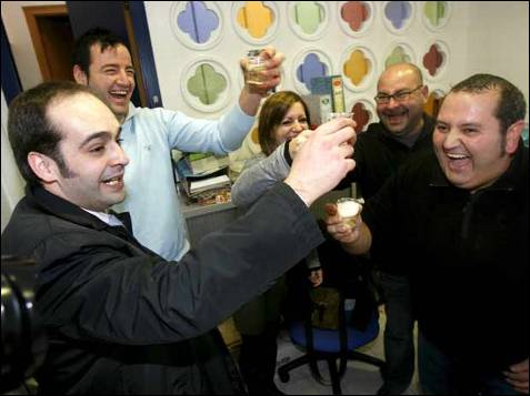 De momento, hasta que no cobren, la celebración es contenida y los brindis, con sidra en vez de champán “porque el presupuesto no da para más”, en palabras de Rubén, uno de los satisfechos ganadores. A las puertas de la administración, donde se han acercado muchos vecinos, el nombre más repetido era en los momentos iniciales el de ‘Pepe’, el lotero, al que todos trataban de localizar para compartir la alegría.