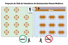 Baleares contará a partir de este viernes con su primer Club de Fumadores anexo a un bar, ubicado en la calle Balèria de la localidad mallorquina de Manacor, tratándose así del primer proyecto que se realiza a través de la propuesta de Pimem, que consiste en la separación física del bar en dos espacios, conectados entre sí por una plataforma giratoria que permitirá servir la bebida y la comida a los fumadores sin que los camareros deban tener contacto directo con ellos.