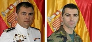 Fotografías facilitadas por el Ministerio de Defensa del sargento Victor Manuel Zamora (i) y del cabo Javier Muñoz Gomez, los dos militares del cuerpo de Infantería de Marina de la Armada, del cuartel de San Fernando (Cádiz), fallecidos hoy.