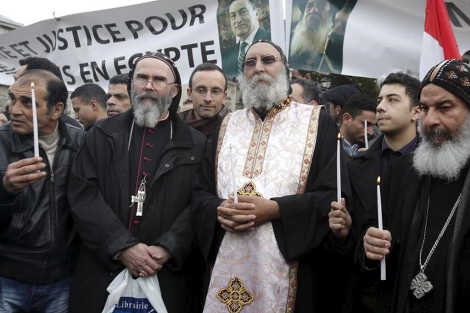 Miles de egipcios coptos protestan por el asesinato de un sacerdote