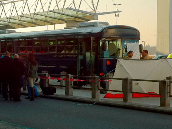 Al parecer, el autor del tiroteo efectuó nueve disparos contra los ocupantes del autobús, una docena de militares de las Fuerzas Aéreas estadounidenses que acaban de aterrizar procedentes de su base en la localidad inglesa de Lakenheath.