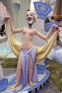 La falla Na Jordana, que tiene por lema “Nos vemos en el infierno”, hace gala de su acreditada socarronería condenando a cuerda y dogal al directivo de RTVV acusado de acoso sexual, a pacer en una pocilga a Marcial Maciel por sus abusos a menores y a ahogarse en la balsa de los excrementos a los coruPPtos, como Ricardo Costa, Carlos Fabra, Correa y los implicados en el caso Malaya.En otra escena de esta misma falla, una figura del rey don Juan Carlos desnudo se iguala a todos los mortales cuando llega la hora de la verdad (la parca).