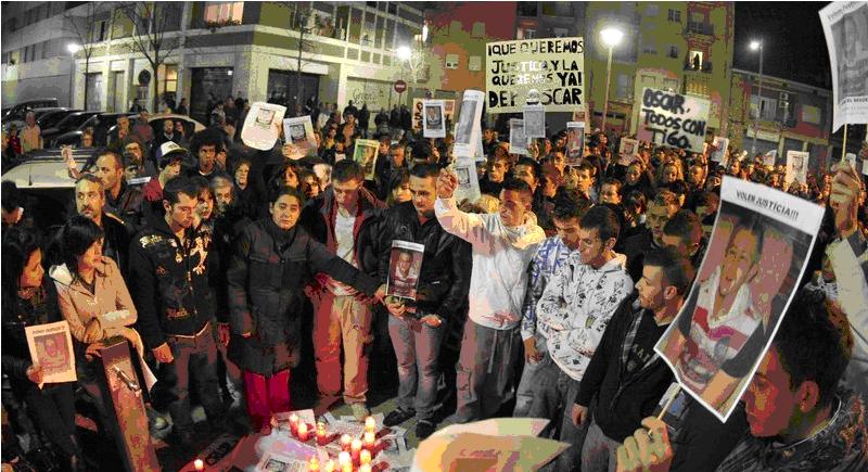 En este lugar depositaron velas y una pancarta con el lema “Queremos justicia, quién será el siguiente?”. Aquí los manifestantes no dejaron de gritar contra la alcaldesa y la policía, con las mismas consignas. Al encontrarse en el lugar donde fue agredido el chico, reclamaron también que hablaran posibles testigos de la agresión, en referencia a que algún vecino hubiera presenciado la pelea. A continuación los manifestantes se plantaron en medio del paseo Països Catalans, donde cortaron el tráfico durante unos minutos, sin que se produjeran incidentes, aunque hubo un momento en que golpearon un coche policial.
