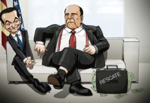 Zapatero con su amante la banca machaca a su teórica esposa: La población española.