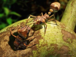 Resulta que durante los millones de años de evolución de las hormigas recolectoras el esquema que han usado ha sido el mismo. Como todas las hormigas, las ‘pogonomyrmex barbatus’ usan señales químicas para intercambiar de información. Segregan sustancias sobre sus exoesqueletos. Sus compañeros de nido frotan los exoesqueletos con sus antenas y así leen estos mensajes. Una combinación particular de sustancias químicas en el exoesqueleto del insecto dice qué tipo de funciones efectúa este ejemplar: si es una patrulla o un forrajeador, dónde ha estado y qué comida ha encontrado.