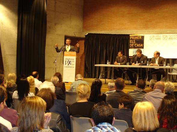 Y entre los aplausos del público asistente tomó el atril Mònica Pérez, candidata por Cerdanyola, que presumió de su condición de ama de casa y de sus dos hijos. Estas fueron sus palabras: “Me presento por PxC porque es el único partido por el que me siento representada de verdad”. Dejó paso a la candidata de Viladecavalls, Marisa Sans, que es diplomada en Ciencias Empresariales, quoen dijo sentirse “muy orgullosa del partido que represento y de mi presidente, porque es el único político que dice las cosas claras y en catalán. La inmigración supone un grave peligro para la identidad cristiana de Cataluña”, subrayó.