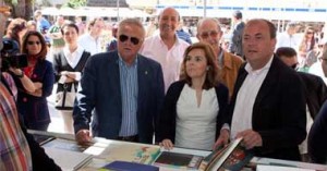 Monago llegó exultante. Arropado por los que fueron sus compañeros del ayuntamiento pacense, donde fue concejal durante 17 años, y acompañado por Soraya Sáenz de Santamaría, la portavoz del PP en el Congreso de los Diputados, se paseó ayer por la Feria del Libro de Badajoz y por algunas calles de la ciudad.