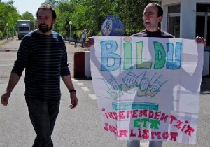 ETA, cada vez más cerca de su legalización: Un histórico etarra sale de la cárcel mostrando un cartel de Bildu