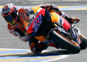 D.A.- El australiano Casey Stoner (Honda) se impuso hoy en el Gran Premio de Francia, en el que el español Dani Pedrosa (Honda) se cayó en la decimoctava vuelta cuando peleaba con el italiano Marco Simoncelli por la segunda posición y se rompió la clavícula. La dirección de carrera decidió sancionar a Simoncelli con un paso por la línea de los garajes y éste perdió cinco posiciones. El fin de semana en el circuito de Le Mans ha estado marcado por la polémica sobre la seguridad y la legalidad de los adelantamientos en las carreras.