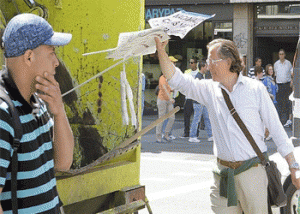 Ya han transcurrido varios días desde que comenzase la acampada en la Puerta del Sol promovida por el movimiento 15-M. La tónica que ha reinado durante este tiempo es el de una concentración pacífica y masiva en las jornadas previas a las elecciones municipales. Sin embargo, esa tranquilidad se ha roto hoy cuando un hombre ha irrumpido en la Plaza y ha comenzado a arrancar pancartas y carteles que los ‘indignados’ han colocado en la zona.