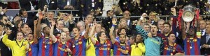 Guardiola, con diez títulos en el petate de tres años, arengó a sus pupilos con un vídeo que combinaba aspectos tácticos y psicológicos. Quizá fue suya también la idea de que los aficionados se encontraran en Wembley con un escrito, firmado por los cuatro capitanes –Puyol, Xavi, Víctor Valdés e Iniesta-, en el que les pedían ayuda para tocar la gloria de nuevo en otra jornada memorable, después de un largo y difícil camino recorrido con una lección de talento, la madurez y el compromiso. Y a fe que lo hicieron.
