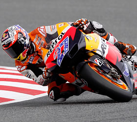 Por delante, Stoner veía que Lorenzo y Simoncelli les estaban cogiendo, así que cambió el ritmo para alejarse de Dovizioso. Los perseguidores acabaron cogiendo al italiano y Lorenzo llegó a pasarle, justo antes de irse al suelo en la octava vuelta.