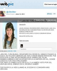 La policía busca desde hace una semana a una joven madrileña de la acampada de la Puerta del Sol que desapareció sin dejar pista. Se trata de Laura del Cura, de 18 años, que fue vista por última vez en el Barrio del Pilar de Madrid el pasado sábado 4 de junio y que frecuentó con asiduidad el campamento de los ‘indignados’ en el ‘kilómetro cero’.
