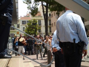 Sucedió que, una vez terminado el acto, los ediles saldrían por la puerta de atrás del edificio consistorial, un anexo moderno que es usado normalmente desde hace años por estar ubicado allí el ascensor y todo lo necesario. La fachada es sólo eso, fachada. Allí nos dirigimos todos.