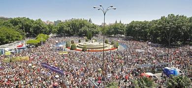 Bajo un intenso calor, los participantes en las distintas marchas, que arrancaron a las nueve de la mañana, han mantenido una actitud pacífica y han insistido en que “lo que sí es violencia es no llegar a fin de mes”. Durante la lectura de un manifiesto, con el que se ha dado por concluida la marcha, se ha aludido a la convocatoria de una huelga general y a la revolución.