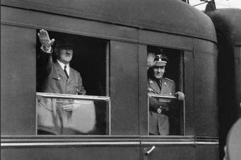 Cuatro páginas después se puede ver al Führer rodeado de militares, esperando en una estación de tren la llegada de su aliado, el entonces regente de Hungría, Miklós Horthy, según las averiguaciones del periódico.