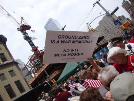 Protesta contra la construcción de una megamezquita en el mismo lugar donde impactaron los aviones del 11-S.