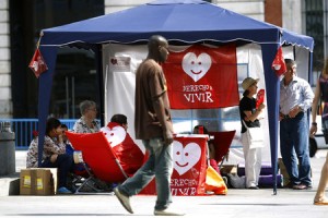Un grupo de jóvenes se han instalado desde el pasado domingo de forma indefinida en la Puerta del Sol para reivindicar el derecho a la vida, con motivo del aniversario este 5 de julio de la entrada en vigor de la ley del aborto aprobada en marzo del 2010. Esta veintena de jóvenes se denominan a sí mismos como los Indignados por los ataques a la vida y han lanzado el hahstag #AcampadaVida en la red social de Twitter, según ha informado HazteOir.