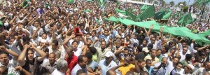 El discurso de Gadafi, ante unas 50.000 personas, demuestra que el mandatario libio todavía mantiene el apoyo popular en las zonas que controlan sus fuerzas. “El pueblo libio no tiene problemas. Son los poderes coloniales los que tienen un problema. Quieren controlar nuestro petróleo. Están celosos porque Dios no has dado el regalo del petróleo”, ha asegurado. “No les tememos. No tenemos otra opción que resistir, convertirnos en mártires y luchar hasta el final”, ha concluido.