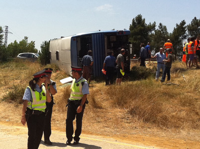 Al menos 44 heridos por el vuelco de un autobús en Gerona